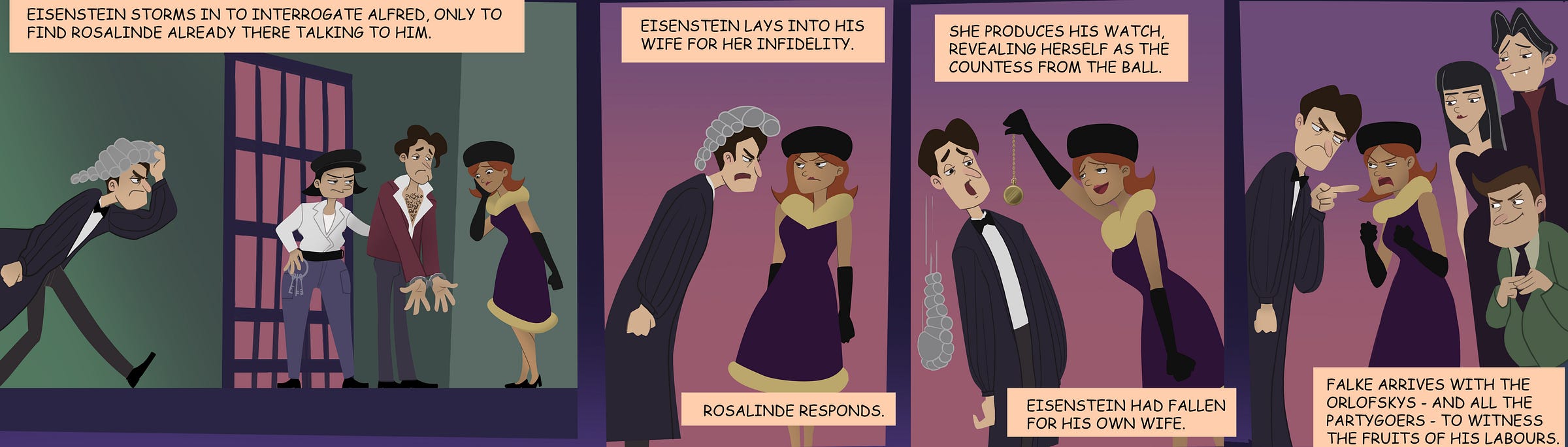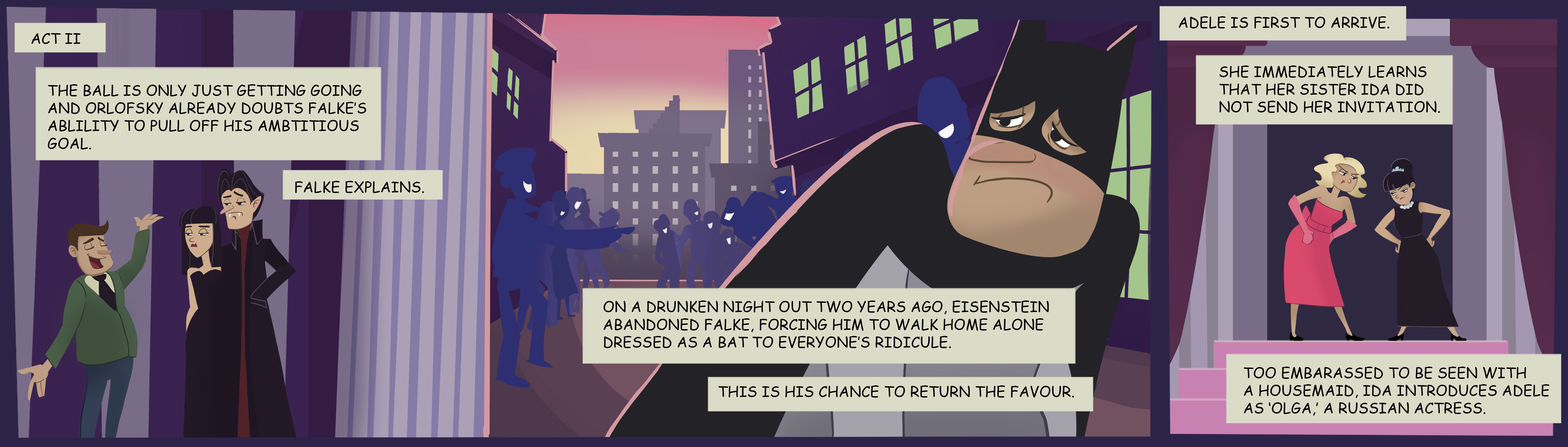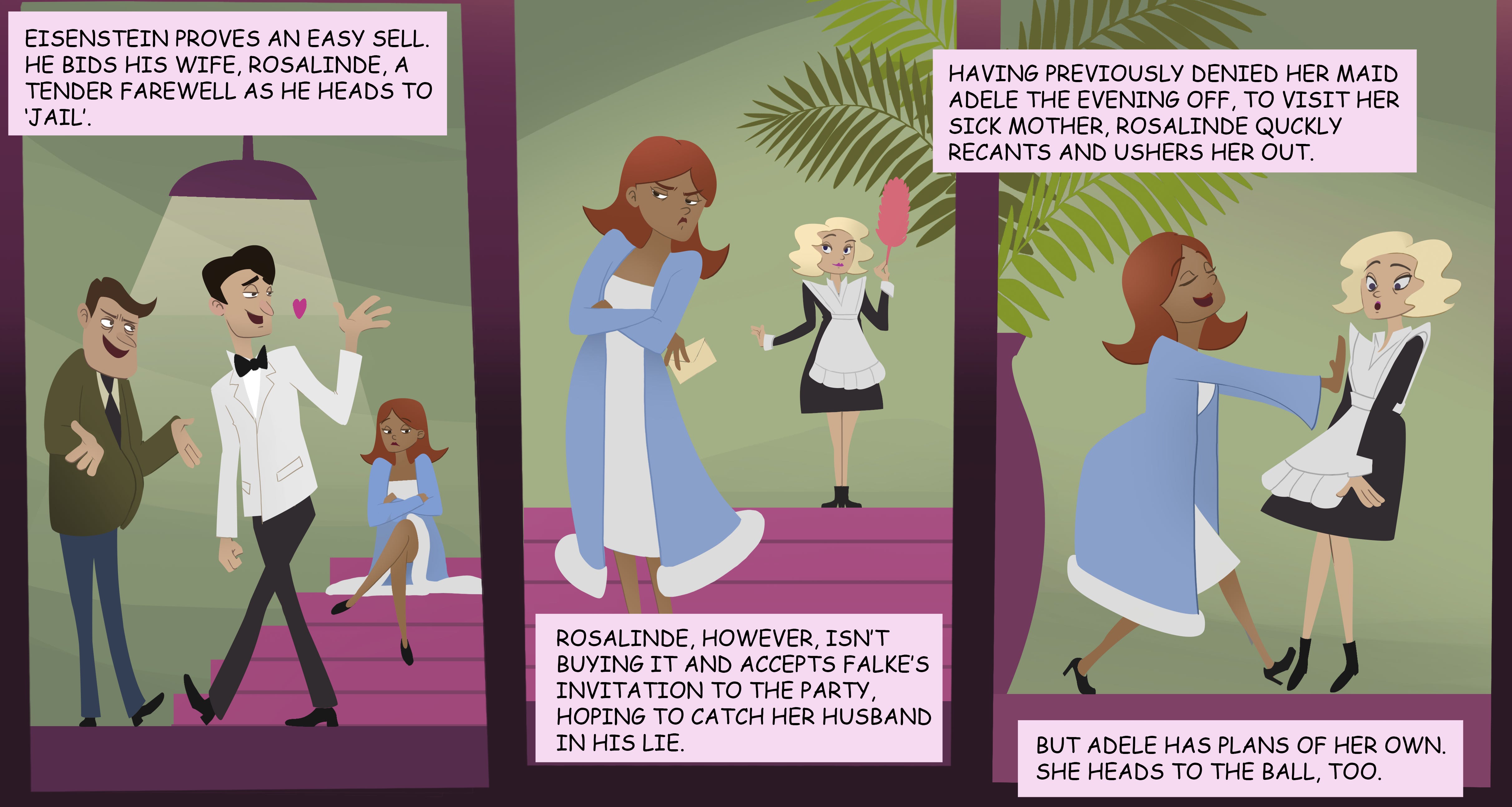 The absurdities of Die Fledermaus (The Bat) captured in comic form by the imaginative Amy Fielder.