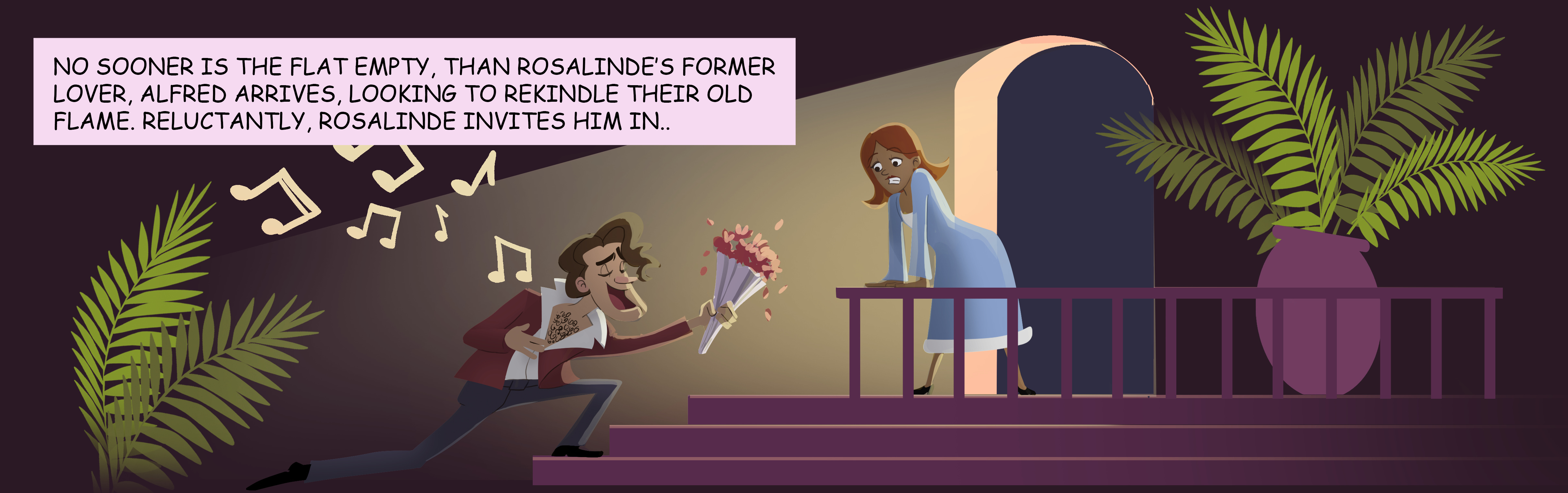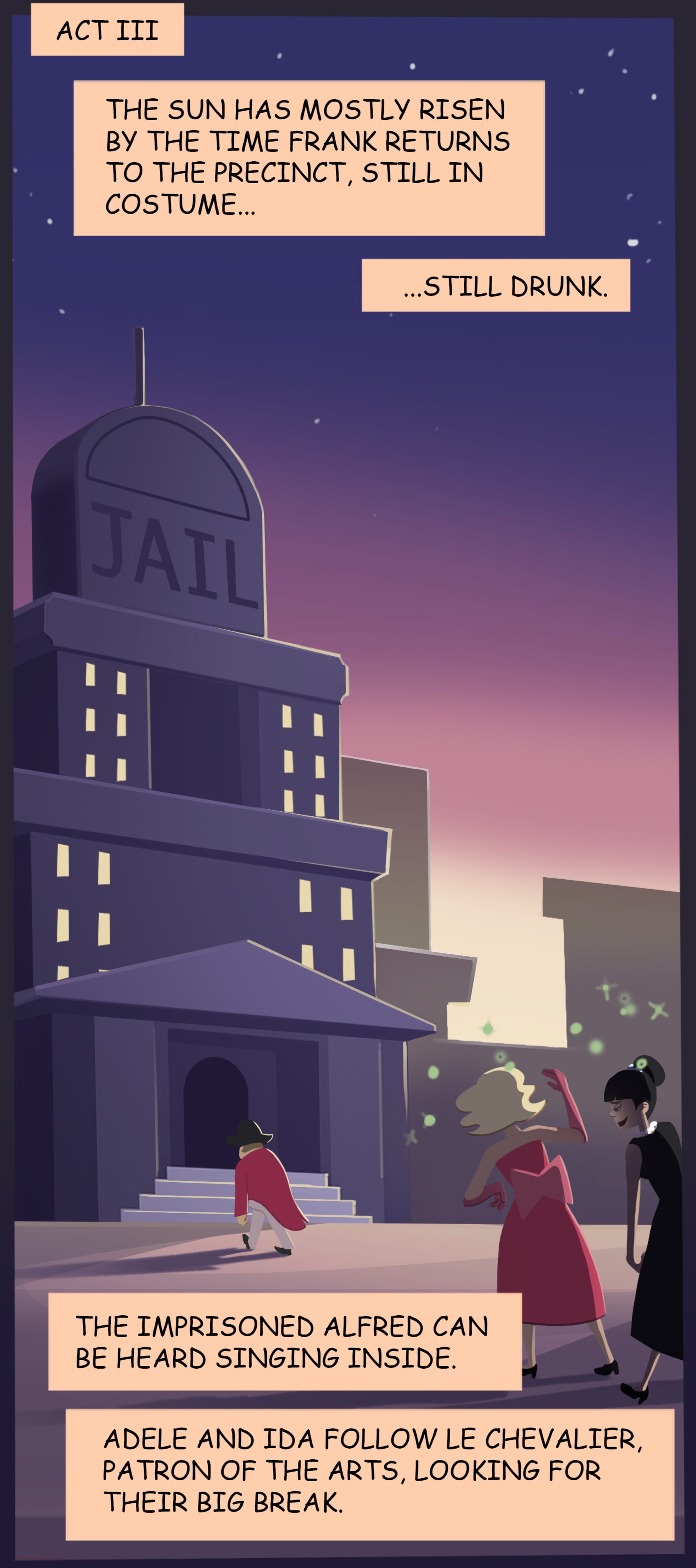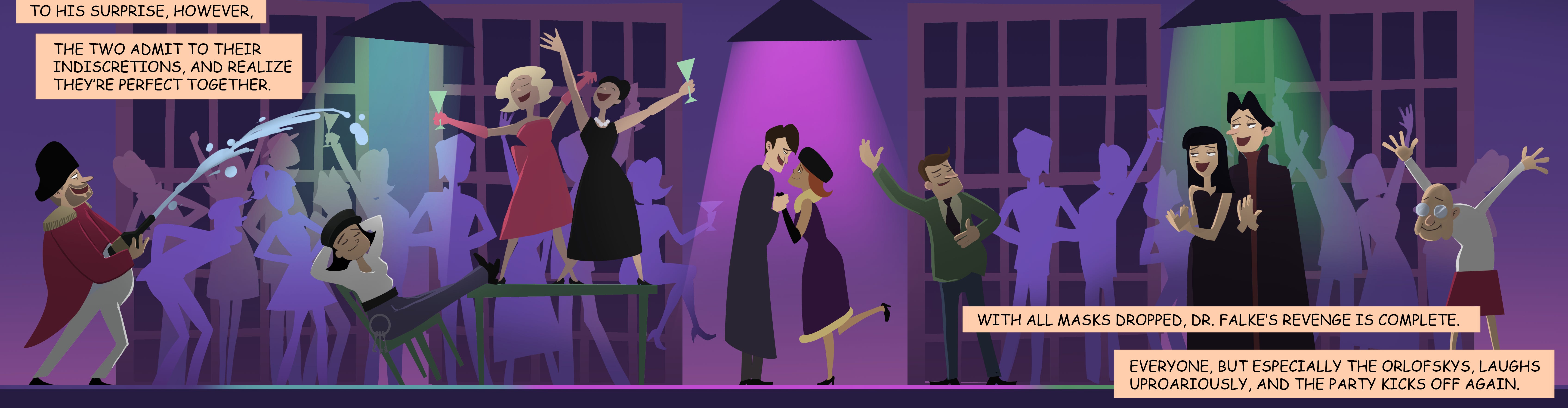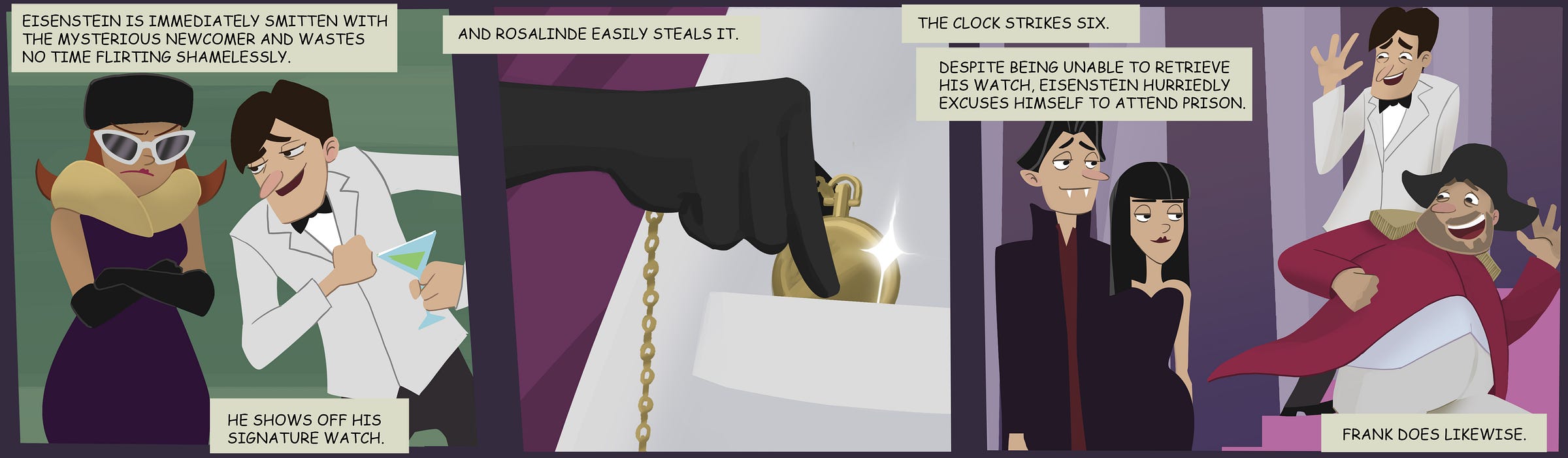 The absurdities of Die Fledermaus (The Bat) captured in comic form by the imaginative Amy Fielder.